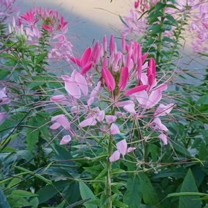 クレオメが咲き始めています。 セイヨウフウチョウソウ(西洋風蝶草)とも言われます✨ 花色は白やピンクで、太くて長い雌しべと、さらに長い雄しべが特徴です🎶 夏☀の終わりから秋🎑にかけて見られるので、そろそろ夏も終わりでしょうか😃