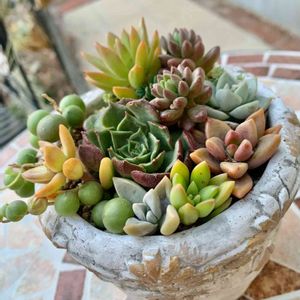 多肉の ファィヤー リップ さん 植え替えました❣️ 私は 葉挿しは しないので、 最初 買った 1 苗 が、現在 こんだけ 増えました ♡ 同じ形の 鉢が 4つ あったので、 それに 植えてみました❣️