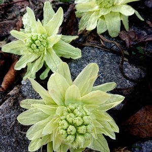 オダマキ 雪解けの庭に顔を出したのは 3種類のオダマキでした🌱 去年初めて植えたので 今年も花が咲くのが 楽しみです❣️♫