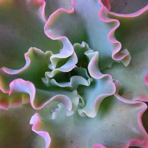 15日はド真ん中の日だそうです こちらも初めて参加させていただきます 主催者さん よろしくお願いいたします 多肉「高砂の翁」のド真ん中です ド真ん中の写真を撮ってみたら フリフリの一部にツンとした所が あるんだ~❕発見でした💡 縁取りのピンク無加工でもキレイ✨ だいぶ大きくなって直径20センチ弱 まだ大きくなるのかな? 最初は名前もオジイサンで 見た目キモカワな感じに思えてたけど この頃は愛着が出てきました😊 シミのような斑点があるので 一株は室内に置いてみたけど 外の方がキレイです オジイは日光浴が好きなのね 室内暮らしのオジイは 徐々に外に戻してあげよう 2019年9月12日投稿の1つが 大きくなりました