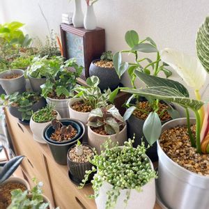 無印良品で出会ったシェフレラ・トリネッティ🪴✨ 斑入りで小ぶりなシェフレラ探してたけど、偶然に出会った🪴✨ しかーし…葉先が黒くなってり、茶色いものがあったので悩んだ🌀 10%OFFだし、このままじゃダメになっちゃうと思い…コレもご縁だと連れ帰る事にした。 根っこを確認しつつ、速攻で植え替え👍🏼 傷んだ葉先を切って、ダメな葉っぱはカット✂️ あら、綺麗🌟 このまま無事にウチに馴染んでくれますように🙏🏼💕