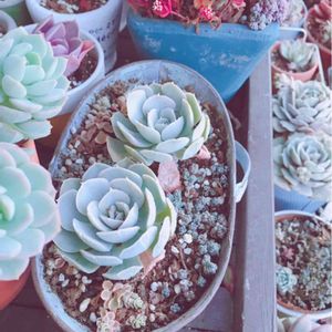 植え替え疲れた! でも楽しかった! 今までは多肉用の土使ってたけど、量も増えたし大きな多肉用?な感じで粒が大きくて多肉が倒れたりしてたから、自分で作ってみた!普通の花の培養土、芝の目土、砂、くん炭、ゼオライト( ⸝⸝⸝⁼̴́◡︎⁼̴̀⸝⸝⸝) 益々愛着湧いたけれども、不安も一杯(爆) 上手く根付いてくれるといいなぁ。