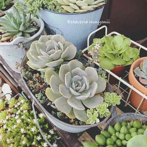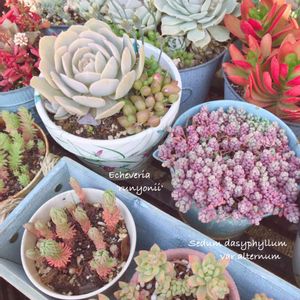 今日は偏頭痛が出てしまい薬💊飲んで動けるまでに一時間😭頭痛信号の時に飲んでおかないと効きが遅いよー(´⚲_⚲`) ···今はもう平気(*•̀ᴗ•́*)و ̑̑だからね! ↖️乙女心と虹の玉と奥の方にオーロラも みんな棒多肉だけど大好き ↗️そろそろ分離しようかな( • ̀ω•́ )ブラウンローズ ↙️最近入手してワクワクのルンヨニー😘ん~カワイイ ↘️サンバーストさんの活きがいい
