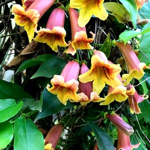 🍀ツリガネカズラ🍀 (別名 ビグノニア、 カレーバイン) カレーの香りがするよ、と言われて名前も分からず 20年以上前にもらっ植物です。 ツルは伸びて邪魔になるし、花は咲かないし可愛くないし、いい加減抜こうかと思っていました。😤 それがなんと 今年初めてお花が咲きました。🤗🎵🎶💞 抜かれるのがいやだったんですね。😅💦 🏷つる巻き月曜日 🏷ゲゲゲの月曜日 に参加させて下さいね。 今日2投稿目、ごめんなさい。