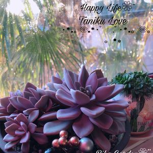 仕事終わってまったり中〜😀 多肉ちゃんバイキング③ デビー💕 パープルが新鮮🤩この子は肉厚でドッシリとしてる😍