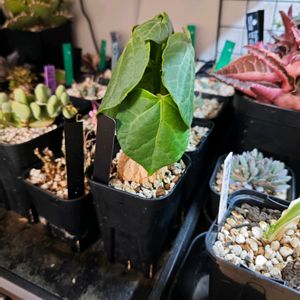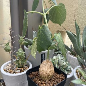 今日は仕事に余裕があります※今のところ ①マテレア シクロフィラ とうとう、大きい葉が落ちました。 塊根部はバッキバキに割れてます。😍 私の腹筋もこれくらい割れないかな… ②③植物棚 何となく撮影。 ③は長短と鉢を交互に置いたら、あら不思議! スペースが出来たよ!😊