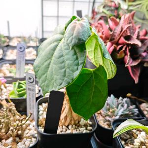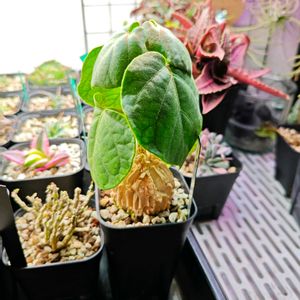 先日の植物フェスで購入したもう一つの鉢、マテレア・シクロフィラです。塊根部が思ったよりも弾力があるなと思いました。少し冬越しが心配です。