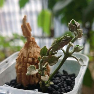 移りゆく季節。 日本には ずっと四季があって欲しいと思う 今日この頃。 リトルべイベの木の下で。 マテレア シクロフィラ ①気がつけば 黄葉して 1、2枚と落ちている。 ②コルク木肌の塊根もふた周りくらい 大きくなったかな。(測っとけw) ③久しぶりのみずやり。 沢山のつぼみを見つけたね。 ひとり ほくそ笑む😏 「ほくそ笑む」という言葉は、北叟(ほくそう)という老人が幸不幸、喜憂、いずれにつけても少し笑ったことに由来しているという。