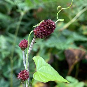 ちょっとおしゃれなワレモコウさん♪ ヤマイモの蔓に絡まれて😅