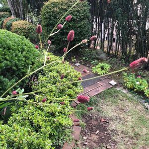 トトちゃんのお庭 🍀ワレモコウ(吾亦紅)🍀 今日のお花🌸 今年は大きく成長してくれてます👍 日陰だから、お日様の方に前に前にと出て来ました❣️ 色も綺麗になるんだね🌸🌸 日向に植え替えしなくちゃね🤗