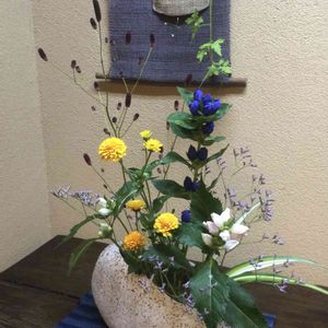 秋ですね😄 空間にあればあまり存在感が有りません😅 壁の前に生えてる吾亦紅は、目に付きます❣️