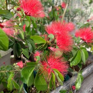 蕾が可愛いなぁと思ってたら、いつの間にかパッと咲いてました。 淡いピンクの合歓の花とは違う鮮やかな赤💕 葉っぱの形も違います。 〈四季咲きネムノキ〉