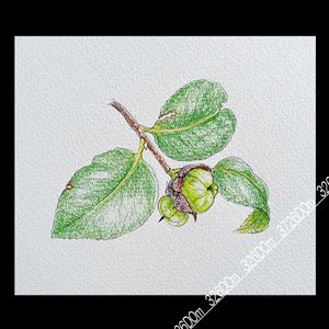 20250608 今日の一枚20250601-1 ①ツバキの実 # 1584 ②使用した色鉛筆 # 1585 ③線画 # 1586