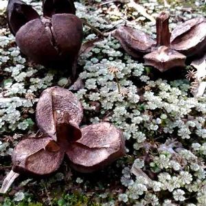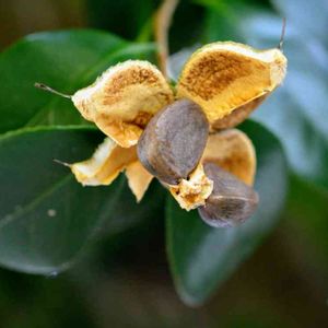 ツバキの実が、パッカリ割れて種が落ちてました😄🟤初めて見ました🤎🤎
