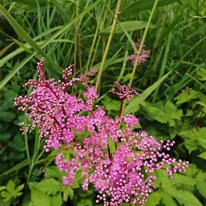 シモツケソウ(下野草) バラ科シモツケソウ属 *下野は木、下野草は草の種類 *京鹿子との見分けが難しい 下野草は京鹿子よりも開花時期が少し遅く、葉っぱの切り込み度が高い 2018/7/22 大分県 長者原 タデ原湿原
