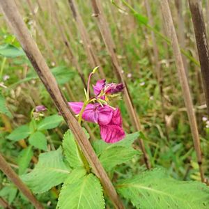 ツリフネソウ (釣船草)(吊舟草) ツリフネソウ科ツリフネソウ属 ムラサキツリフネ(紫釣船)とも呼ばれる✨🥀✨ サワギキョウの足元に見つけた✨😍✨ 2018/9/16 北九州 平尾台 広谷湿原