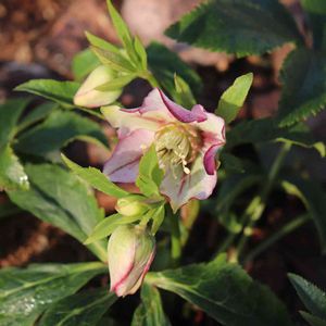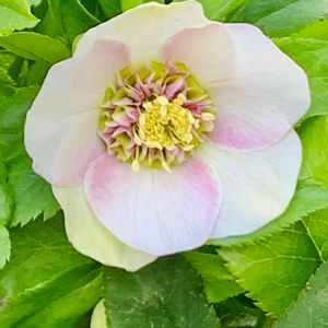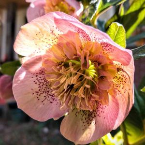 クリスマスローズ ブロッチセミダブル 我が家〜唯一のセミダブルのクリスマスローズさんです。 ピンクの中にグリーンが混ざった花色でセミダブルのネクタリーの花びらもお揃いの色味。ソバカスの様なブロッチを持ったクリスマスローズです。先日、実生シリーズで渋い実生クリローさんの親と思われるクリスマスローズです。親は可愛い子路線なんですけどね……😅 植えて7年は経ってるのですが……あんまり花茎は沢山になりませんね……3本位で止まってます。