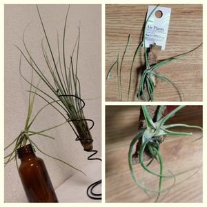 コルクのコースターを棒状に裂いた(千切った)ものを、スキディアナ(元々左端の姿)に接着剤でくっ付けて、ウスネオイデスと一緒に吊るしていたのですが、 ある時、ソーキングをしようと手にしたところ、まっすぐ上に伸びている方の葉ばかりが全部ばらばら取れてしまった⁉️💦💦💦(↗️) まさか根元が駄目になったのかと確認したら、まだしっかり残っているみたいです。(↘️) 恐々現状維持の状態です。が大丈夫かな、、、💦💦 最近新顔ばかりにかまけてたから、怒った???