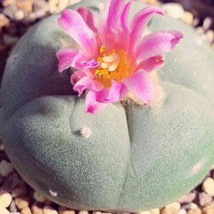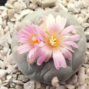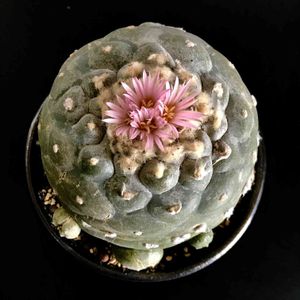 Lophophora williamsii var.decipiens ロホホラ 銀冠玉 今年3度目の開花しました🌸 咲きすぎだよなー 回を重ねるほど花の色が濃くなるのは何故だろ?