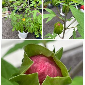今日のベランダ 1 タイタンビカス間もなく開花。 蕾が割れて、ピンクの花弁が見えてます😊 昨年購入して、一輪しか咲きませんでした。 今年は沢山咲きそうです😙