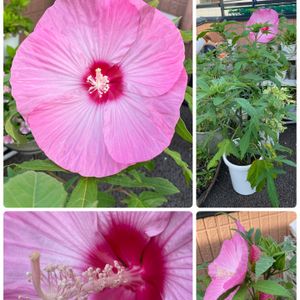 今咲いているピンクの花🌸 ↖️ペチュニア モモイロハートも復活しました。 間もなくベランダから玄関に移動します😊 ↗️カサブランカ ピンクです。 庭から掘り上げ、鉢植えにしました。 今年は1輪のみ開花です。 ⬇️最近upしているタイタンビカス レイア😄 玄関に移動しています。 花のサイズは22cmありました😍