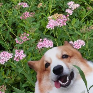 ワンワン祭り いつも満面の笑顔だった ゴン💞 懐かしい もうすぐお盆、 帰って来るよね😊 お花はシモツケ💞