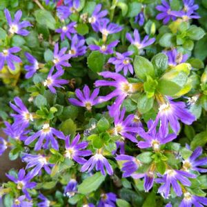 ブルーファンフラワー(スカエポラ) 秋らしい素敵な鉢植えが 通りがかりのマンションの入り口に 置かれていました💜 花びらが半円状についていて 扇(FAN)のようですね 🏷星屑ファンタジー