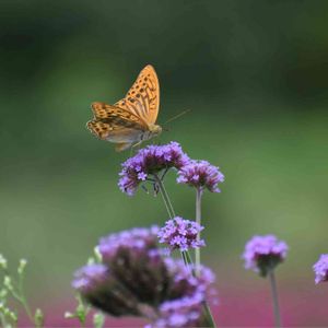 綺麗な紫の花🌸🌸変わったチョウが止まったので🦋パチリでした🦋🌸👍📷 ヤナギハナガサ(サンジャクバーベナ)の花です☺️👍