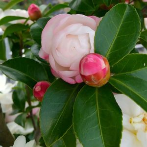 今日のお花『サザンカ』 雨が上がったので庭のサザンカを撮ってきました まだほんの数輪しか咲いてません 硬い蕾が沢山です ④⑤『硬葉ハオルチア達』 日当たりが良い場所に置いてるからか真っ赤です😅 冬も同じ場所で不織布1枚で過ごしてもらってます