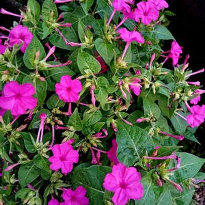 『オシロイバナ』 仲良し😃🍒😃のオシロイバナ やっとオシロイバナが咲き始めました😊👍✨️ 今は濃い🩷ピンクばかりだけど…そのうち色んな色が咲いてくれるのかな? 楽しみ😊👍✨️ 【花言葉】 臆病 内気 恋を疑う