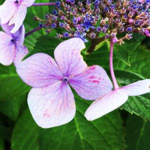 今日の散歩🚶♂️ 新川🚣 カシワバアジサイ💠 飛んでいきそうです🎵