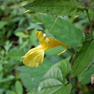 キツリフネ ツリフネソウの仲間が咲き始めました☺️初花です😆 でもよーく見ると黄色い蝶々にも見えます😁