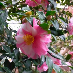 今日の花 「ツバキ」 紋繻子(もんじゅす)という椿 2023年初投稿です 今年もよろしくお願いしますm(_ _)m