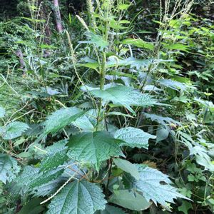 8/16 筑波山 デッカイです。 アカソとヤブマオの交雑種と言われる「メヤブマオ」ですね😊 大きな葉の先端がアカソと同じように大きく亀葉状に3裂します。