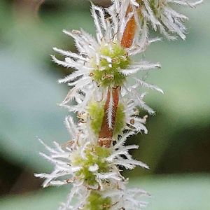 自然教育園のメヤブマオの花、ヤブマオと似ていますが葉の形が違います。 カンザシみたいに可愛いお花です💕