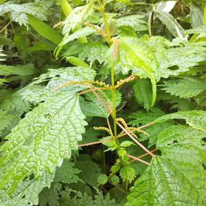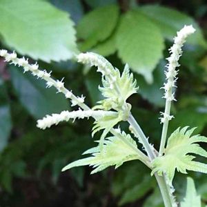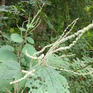 メヤブマオ イラクサ科カラムシ属 北海道〜九州、中国 山地、里山 どこでも生える 全体ヤブマオに似るが葉の先端がはっきりと3列する、花序は細く✿❀は疎ら。ヤブマオより高所に生える事が多い。マオ=カラムシであるが!、本種は繊維が弱いので原料にならなかった。ヤブと付けられた。