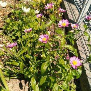 今年も都忘れが咲き始めました😍 大好きなお花😊 今年は地植えもしてみたのですが、石の向こう側にあるのも都忘れです。 まだ蕾ですが、明日には咲きそうです。 毎年しっかり咲いてくれるので、比較的育てやすいお花だと思います🍀 メダカ鉢のカキツバタは、全く花が咲きそうにないです😓