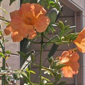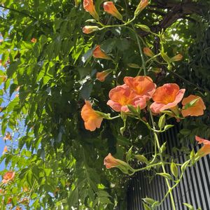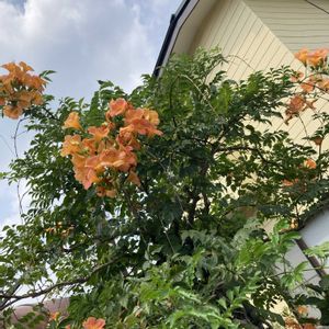 自宅ののうぜんかづら 画角むずっ 今年は背も伸びて高い位置で花咲いた
