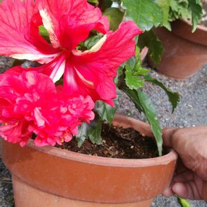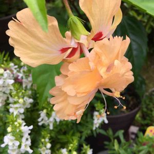 こんにちわ♬ヾ(öᴗ<๑)❀ 連日のこの暑さが良くお似合いのハイビスカス🌺 この 暑さにはびくともせず沢山咲き初めてます🌺 八重咲きフラミンゴハイビスカス🌺🦩