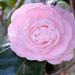 オトメツバキ(乙女椿) 大好きな乙女椿 山茶花にも乙女があるようで迷いましたが、葉の鋸歯が浅いので乙女椿としました。随分、早い開花と思います。