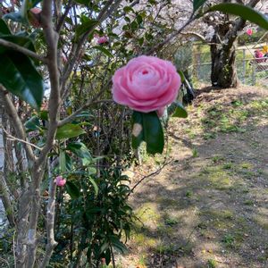 ツバキの中でも、遅咲きの「オトメツバキ」をパチリ!📸🌸🌿😄🌞✌️ お花の桃色が乙女のように優しい色です。🍑😋👌