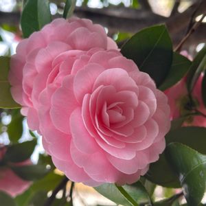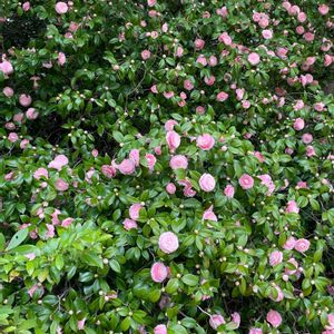 ツバキ✨ ピンクのバラのよう💗 親戚の庭で美しく咲いています🍃