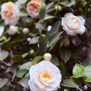 🏷️和菓子の日 大好きな乙女椿さんも咲いてきたよ🌸 今年はたくさん咲いてる💓 この子写真撮ると紗がかかるの💓 練切りみたいで美味しそう😻 母が大昔父の上司のお宅に年始の お手伝いに行った時に、挿し木用に 枝を貰って根付かせたもの🍀 挿し木成功した母もすごいけど、 年始のお手伝いっていう風習 今はないよね😽 そんないろんな曰くの樹が庭にはいます🌳