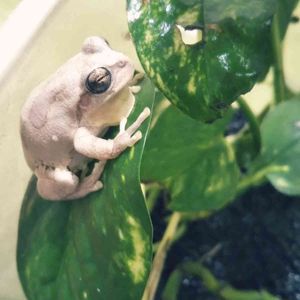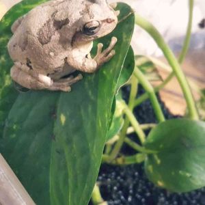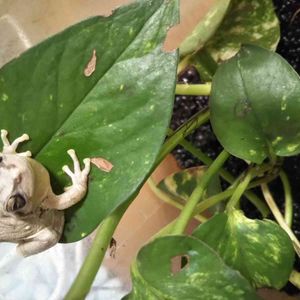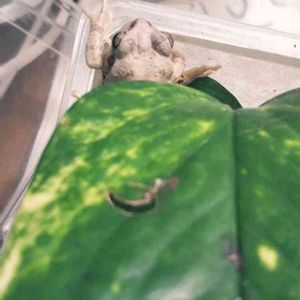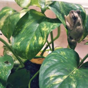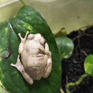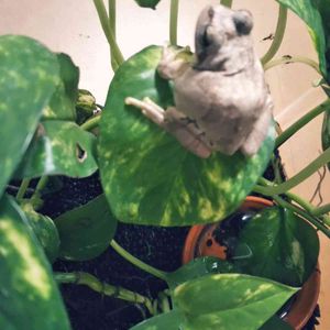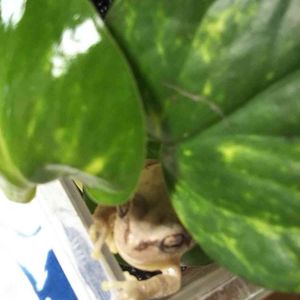 セロームの鉢に住んでいる2匹の日本アマガエル