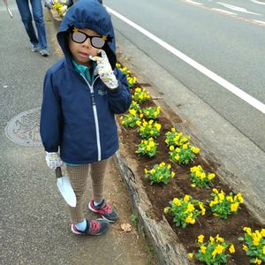 おはようございます☀ この前の日曜日(11/26) 自治会主催の歩道へのビオラ植栽ボランティアに家族でまたまた参加してきました😀 画像は自分ではなく息子です😁 小雨が降っていたので今回は雑草取りがなく、あっとゆー間に終了🎵 自分は6苗くらい植えただけです。 今回は3回目の参加でしたが、次回(春)も参加したいです‼️