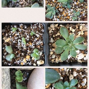 夏にうっかり日陰に移動させ忘れて、焦げ蒸れでダメになっちゃったと思っていた葉挿し達。【2018.8.3】 ダメになったやつもあるけど、ほとんど大丈夫だったよ‼️😄😄😄 変色して溶けたと思っていた白牡丹、成長点がなくなった白牡丹、親葉もないし小さすぎるからこの後どうなるのかわからないけど、色も復活してきたし、成長点が出てきました😊 長男に誕生日でもらったDAISOのピンクプリティみたいな葉挿しも真ん中焦げてたからダメになったかと思いきや、全部?ってくらい大丈夫で結構大きくなりました😊焦げ跡が頑張った証だね👍🏻成長点焦げたと思ったけど、付け根の方は大丈夫だったみたい。 謎祭りも、形がわかるほどに成長しました😊 名無しのパキフィツムは8.29の徒長パキフィツムの所にも2株寄せ植え済みなんです😊 嬉しいなぁ😍