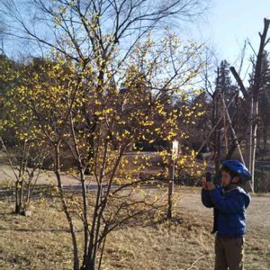 私がロウバイの写真を撮っていたら息子も! 上手く撮れず最終的には怒ってました😅