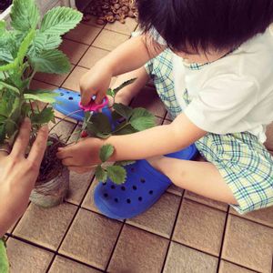 ちーーーっちゃいですが、 1つ目を収穫出来ました🍓 自分達で育てたイチゴがあまりに美味しくて、 息子と2人で朝から感動〜😚✨ ほのかにバラのような香りが お口の中に広がる気がしました🌹