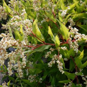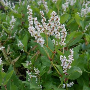 【御山蕎麦】《タデ科》 花言葉 和名のオヤマソバは、「御山蕎麦」の意で、花はソバに似ていて、御山に生えていることによるといい、牧野富太郎は、御山とは白山のこととしている。 雌雄同株。 茎先に総状花序を円錐状につけ、小さい花を多数つける。 花序は長さ4-5cmで、花は両性、白色または緑白色、ときに淡紅色を帯びる。