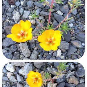 おはようございます。 この暑さのなか、マツバボタンが咲きだしました。💗 砂利のなかでも元気です。🥰 黄色が可愛い❗️